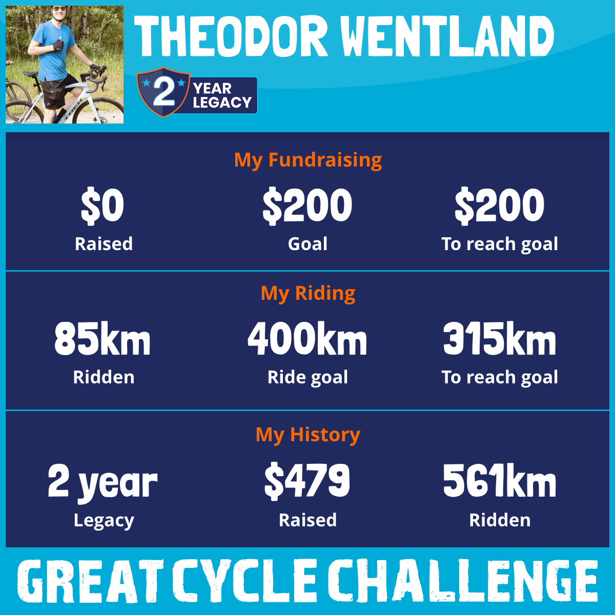 I am riding 400 km for my brother, Ken. Please sponsor me and support my challenge to fight kids' cancer and save little lives.