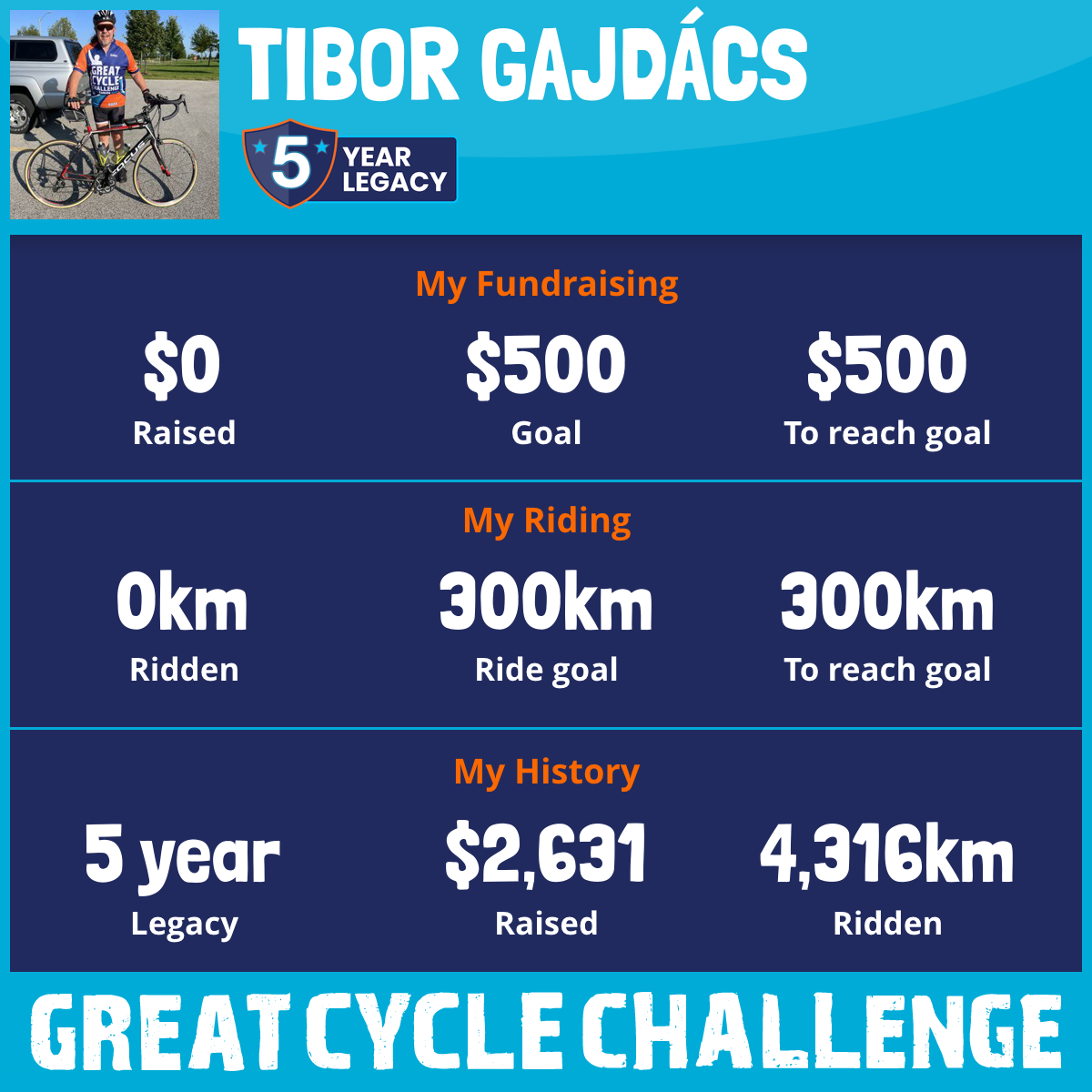 1,301 km Ridden$1,017 Raised2025