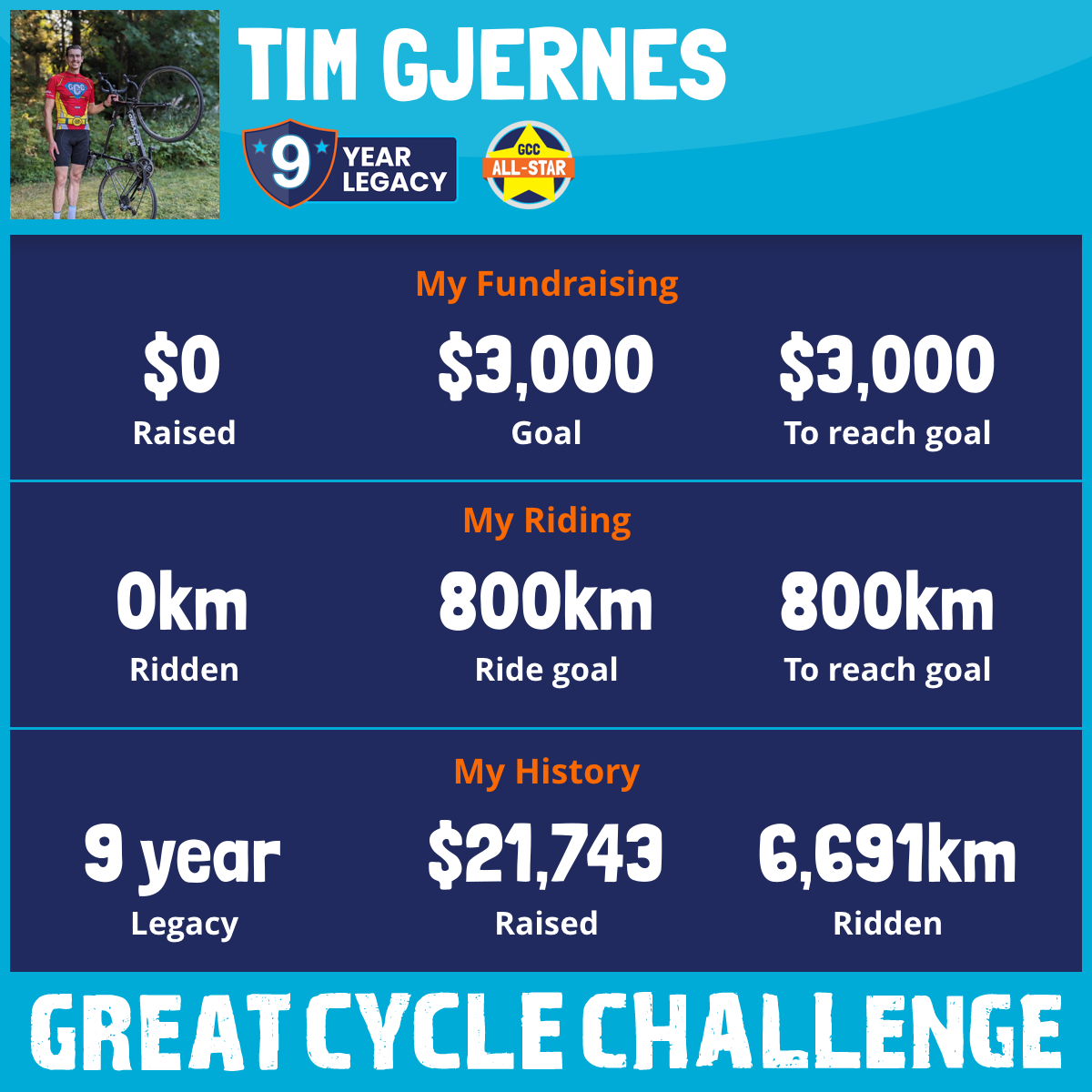 1,201 km Ridden$4,369 Raised2023