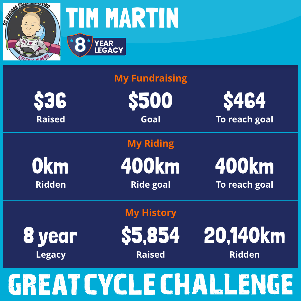 This August, I am taking part in the Great Cycle Challenge to fight kids' cancer for my 8th year in memory of my son Ryley James Roy Martin
