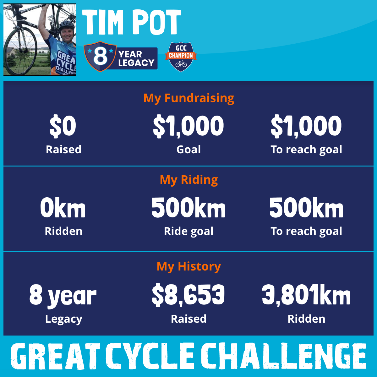 This August will be my 6th year taking part in the Great Cycle Challenge to fight kids' cancer! .