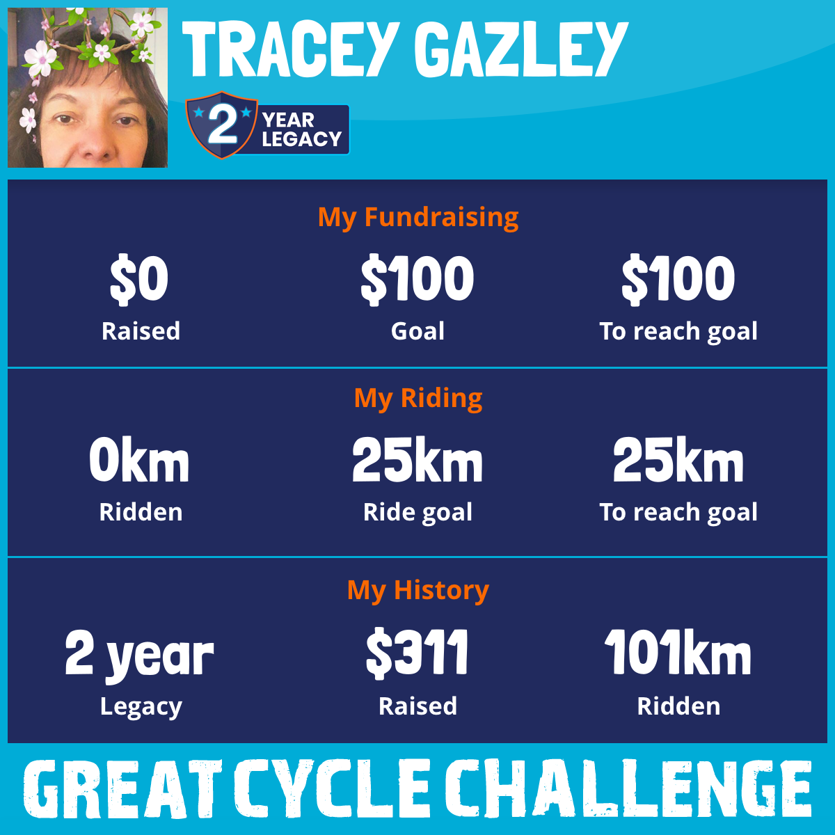 101 km Ridden$311 Raised2018