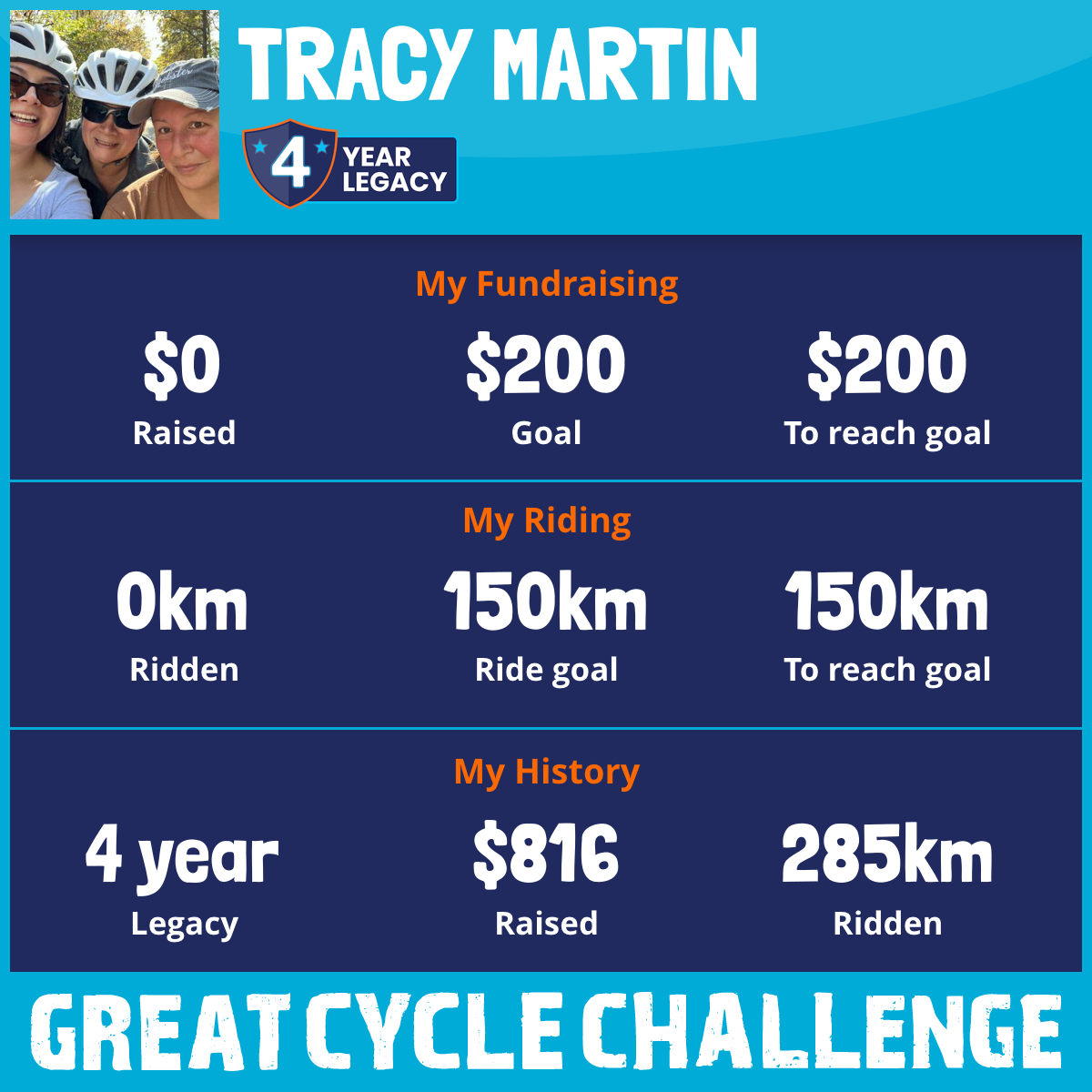 I am riding 150 km for my loved one, Cindy-loo. Please sponsor me and support my challenge to fight kids' cancer and save little lives.
