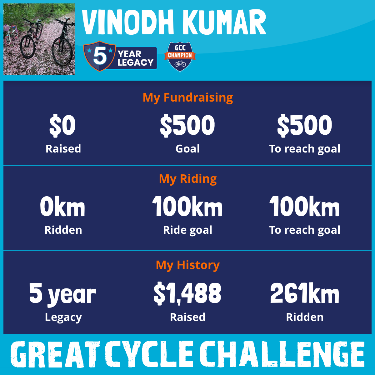 155 km Ridden$422 Raised2020