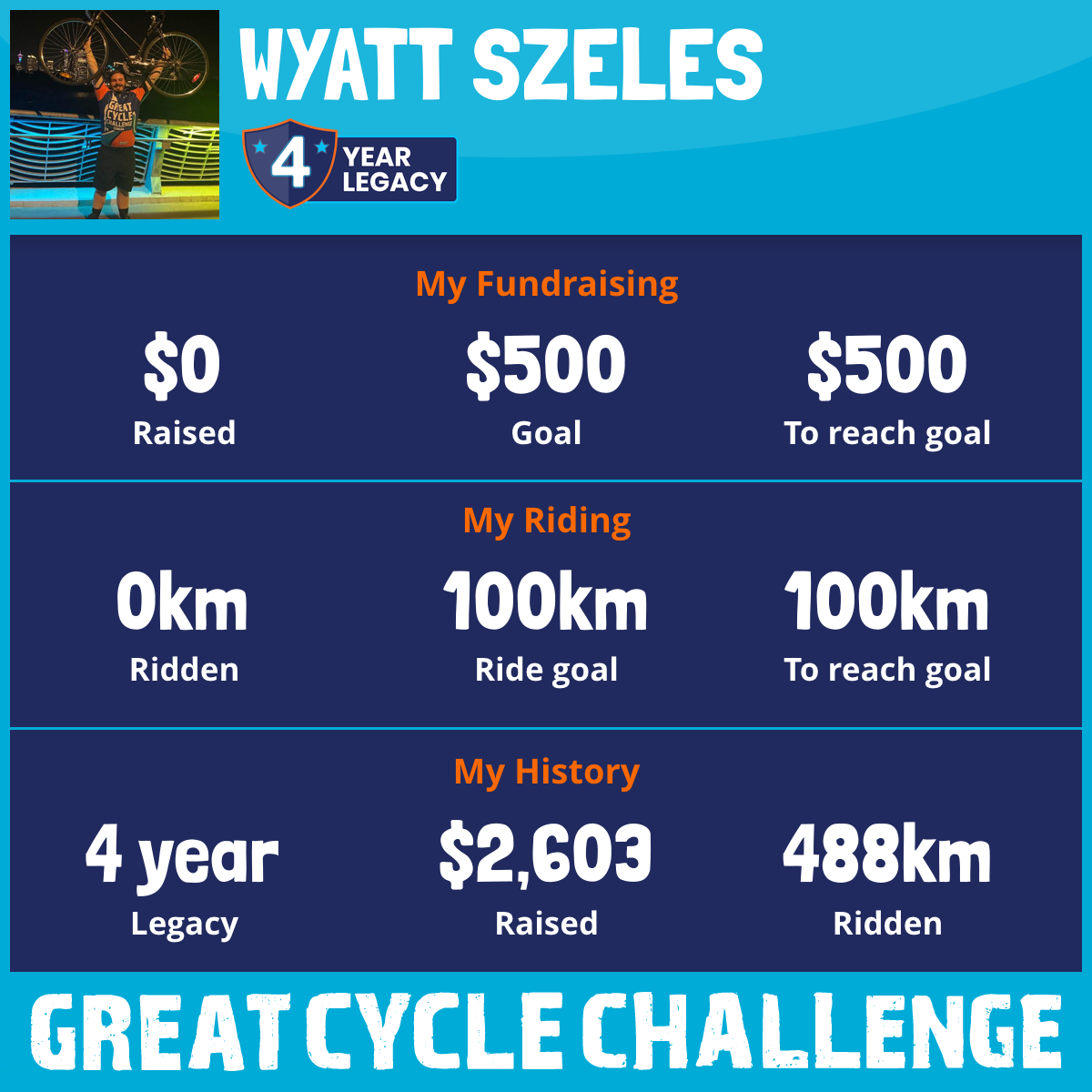 259 km Ridden$1,117 Raised2023