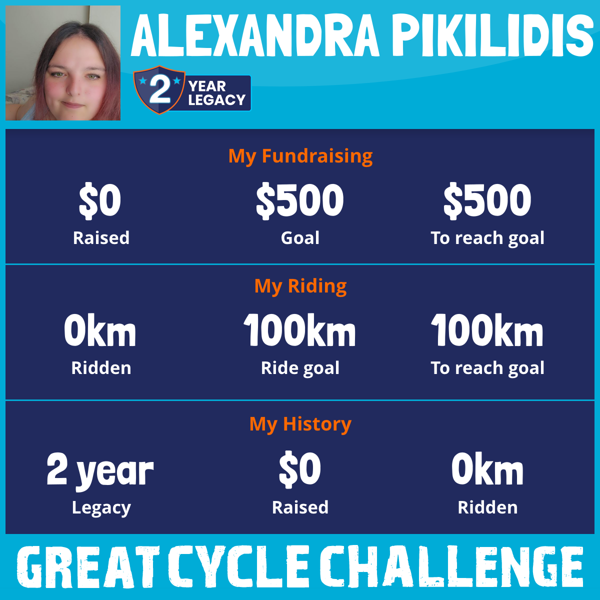 I am riding 100 km in memory of my aunty, chrysanthi. Please sponsor me and support my challenge to fight kids' cancer and save little lives.