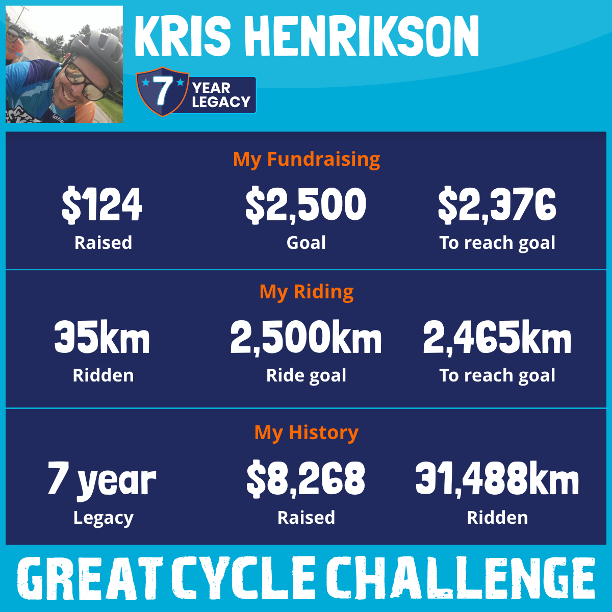 7,460 km Ridden$4,501 Raised2025