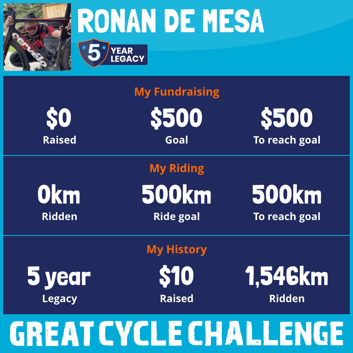 I am riding 500 km in memory of Precy de mesa. Please sponsor me and support my challenge to fight kids' cancer and save little lives.